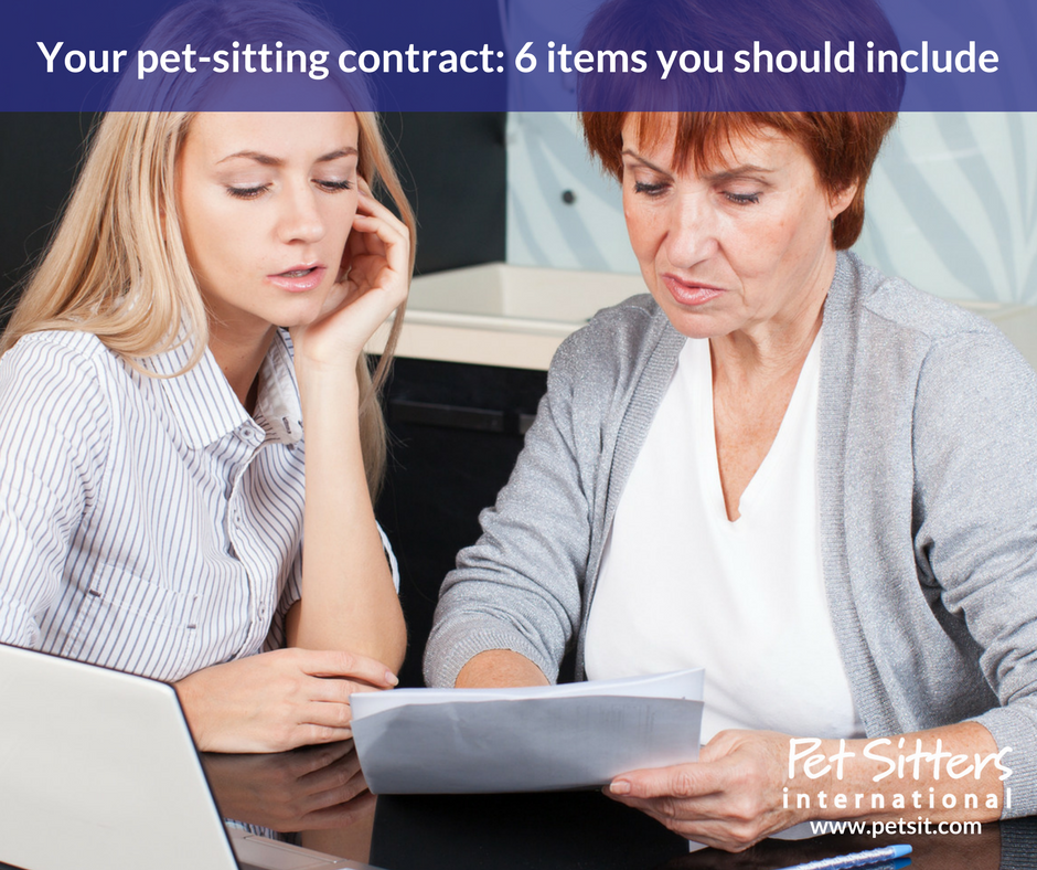 As you begin to prepare a pet-sitting service contract, here are six items you want to be sure to include: